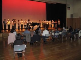 心が春になりました。 参加者がステージで歌いました。
